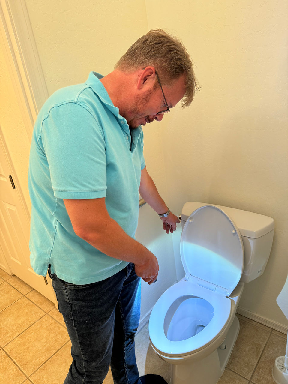 Brush and Flush all toilets in each bathroom to limit buildup of water rings and stains
